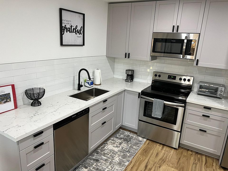 Queen bedMature oak treesLarge patioNew stainless steel appliances