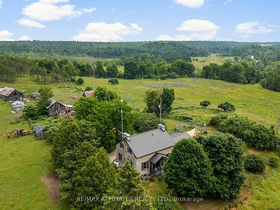 Discover 157 acres of heritage, heart, and pure country magic. This remarkable 1850s stone farmhouse near Lanark is more than a home - it's a legacy. With four barns, rolling fields, and forested trails, it's a place where history and modern comfort live in perfect harmony. Step inside, and the craftsmanship speaks for itself. Original stone walls, exposed beams, and pine floors tell stories from generations past, while thoughtful updates ensure every modern comfort. The heart of the home is the stunning double-sided stone fireplace - a masterpiece that connects the kitchen and family room, inviting cozy evenings and spirited gatherings. Heated tile floors, a metal roof (2015), and updated electrical (200 amp, copper wiring, 2012) make this historic home both timeless and worry-free. Outside, endless possibilities await - from hobby farming to trail riding to simply soaking in the peace of your own private paradise. The property's 157 acres of fields, forest, and natural beauty create a haven for wildlife, adventure, and tranquility alike. Add to that a welcoming rural community, and you'll find something truly rare: a home that offers both solitude and belonging. Whether you dream of a forever family estate, a working farm, or a serene country retreat, 1415 Sheridan Rapids Rd is a story waiting for its next chapter. Don't miss the chance to make it yours. Additional vacant waterfront lot available (PIN 050320025).