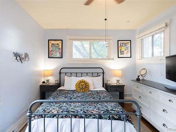 A truly special offering: an updated corner unit condo where 1920s charm meets contemporary comfort. Enjoy quiet living with no shared walls in this bright, inviting space. Nestled in one of Denver's most sought-after and highly walkable neighborhoods, this home boasts an impressive 97 walk score, putting everything you need right at your doorstep. Original hardwood floors, built-ins, and oversized windows fill the living area with natural light, creating an open and welcoming atmosphere. The newly renovated kitchen features quartz countertops, a white tile backsplash, and a new sink. Top to bottom wood cabinets offer plenty storage, and large windows give great light for a kitchen herb garden. The primary bedroom offers a spacious closet and is conveniently located next to a full bath. This charming bath beautifully preserves its historic character with a classic clawfoot tub, subway tile surround, and pedestal sink, thoughtfully enhanced with extra counter space and storage. A versatile second bedroom, accessed through elegant French doors, is a great extra space. The mudroom, with in-unit laundry, offers access to a shared patio. This property offers unparalleled convenience with its own private garage, an additional storage unit, and access to seven first-come, first-served off-street parking spaces a coveted amenity. Your unbeatable location places you just a block from the Bluebird Theater, Atomic Cowboy, and Denver Biscuit Company, with Sienna Wine Bar, Blue Pan Pizza, and Sprouts just a short stroll away. Beyond that, you're just a stone's throw from local favorites like Tattered Cover, Twist & Shout, and the bustling City Park Farmers Market. Imagine grabbing happy hour at Shells and Sauce before a show at the Botanic Gardens, this location truly offers endless, easily accessible activities. Embrace the ultimate urban lifestyle in this Congress Park beauty, perfectly positioned for downtown commutes, City Park adventures, and endless local delights!