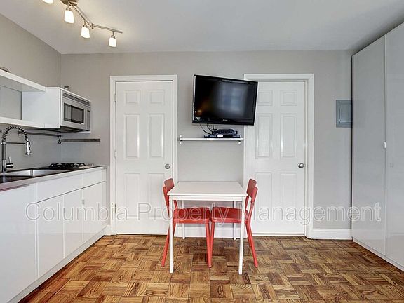 Lovely junior one bedroom located in small converted condo building near the intersection of T and 14th St NW. Unit features a large bathroom with in-floor heating elegantly renovated in marble, studio-like main room with upgraded single wall kitchenette and a separate room for bed (fits full-sized mattresses).