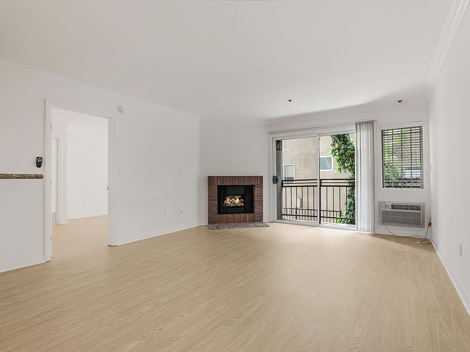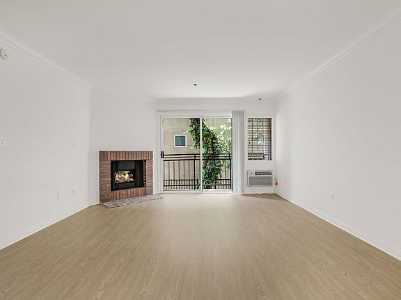 Cozy fireplaceWood-style vinyl plank flooringStainless steel appliancesMirrored closet doorsAir conditioning