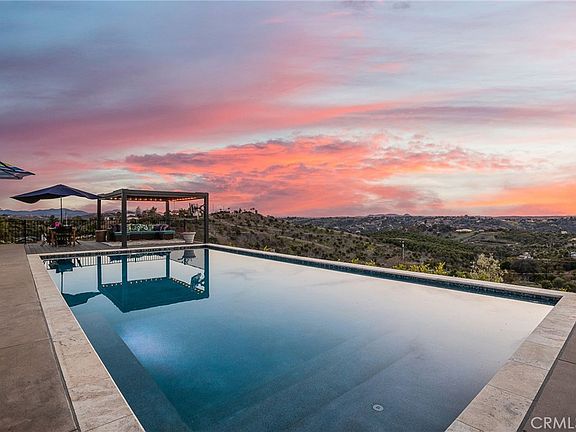 Welcome Home – A serene, private, hilltop oasis nestled in the heart of Fallbrook. This gated, fully fenced 3.5-acre property offers unparalleled westerly views and year-round sunsets that must be experienced in person to truly appreciate. Thoughtfully upgraded throughout, this home exudes warmth and sophistication from the moment you arrive. The open concept living, and kitchen areas are a chef’s dream, featuring rich cabinetry, a custom kitchen island, stainless steel appliances, handmade tile backsplash, and a farmhouse sink. The dining area opens into a private rear courtyard, creating a perfect blend of indoor and outdoor living. The downstairs level offers two generously sized bedrooms and full bathroom with a soaking tub and shower combined. Upstairs, the primary suite is a true sanctuary, with a beautifully designed walk-in closet, and a fully upgraded spa-like bathroom with a custom walk-in shower, built-in vanity storage, and impeccable detailing. Step onto the romantic balcony, where the panoramic views will leave you breathless. Situated on an elevated lot, this home boasts a 40x20 saltwater pool with a lap lane, BBQ area, covered patio, and lounging deck, making it the ultimate entertainer’s dream. The grounds feature a variety of mature fruit trees, including avocado, lemon, lime, orange, persimmon, pomegranate, fig, olive, and more. Also enjoy the paid off- 24 panel- solar system, EV charging station, 2 car garage, 10x12 custom shed, and ample space to build an ADU. This exceptional property combines breathtaking views, elegant upgrades, a fantastic open layout, and resort-style amenities—truly a one-of-a-kind retreat.