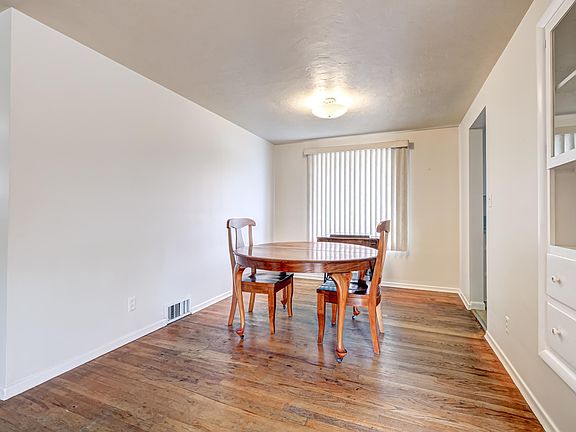 MLS# 266725 Original wood floors in this spacious home on a corner lot near schools and shopping. Spacious combination living/dining room allows for everyone to come over for that next birthday party. The dining room features a built-in glass display cabinet for showing off your collectibles The main floor has two good-sized bedrooms, check out those closets! The bathroom has a new walk-in marble shower surround. Check out the efficient galley kitchen everything within easy reach, on your way to the basement. The lower level has a bedroom with egress window, lots of storage and opportunity for family room, workshop, or home office. This corner lot home includes underground sprinklers in the front yard. Backyard is fully fenced with a covered patio for large gatherings and room for a garden. eat pump for cost effective heating and cooling installed in 2021. Call your favorite agent today and see this one right away.