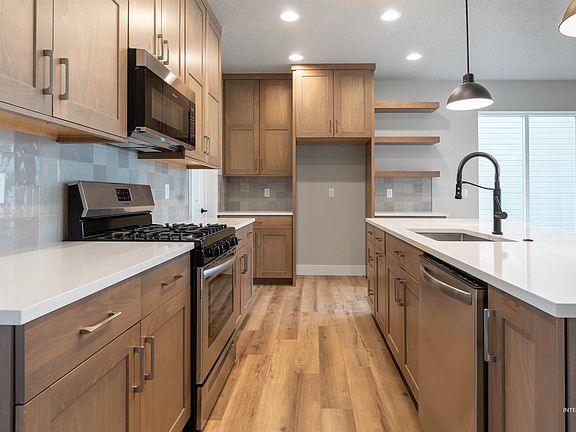 Amazing opportunity to live on a premier lot in the Cazador subdivision built by Harding Homes. Step into this spacious open floor plan highlighted by a wall of windows bringing in the natural light. Gourmet kitchen highlighted by quartz counters, stainless steel appliances, coffee bar, walk in pantry and large island opening into the separate dining and living space. Timeless color scheme and finishes flow into the living room with a tile fireplace. Escape upstairs to a stunning master suite with dual vanities and walk in closet. open loft/bonus area, and large secondary bedrooms. Perfect backyard for entertaining featuring a covered patio. Steps away from the community pool. Minutes to shopping and restaurants in downtown Kuna and directly south of the new shopping center going in off of the Ten Mile exit! Buyers to verify all information.