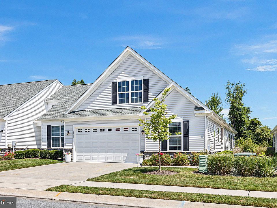 Nice Price Reduction!Beautiful 2 bedroom 2 bath carriage home in Whispering Woods a 55+ community in Middletown. This Rodney model with open floor plan and one floor living is ready for you to move right in. Lots of upgrades including kitchen, flooring, fireplace, tankless water heater and screened in porch. Large master bedroom with tray ceilings, master bath, walk-in closet and sitting/office area. Nice sized second bedroom with full bath right outside the door. Designer kitchen with upgraded soft close cabinets and granite counter tops, dining area, finished two car garage with inside access to laundry room, luxury vinyl plank (LVP) flooring throughout except in bedrooms which are carpet. You will love all the natural light an end unit like this home has! Rounding out the wonderful features of this home is the upgraded screened porch overlooking the farm. Schedule a showing today!