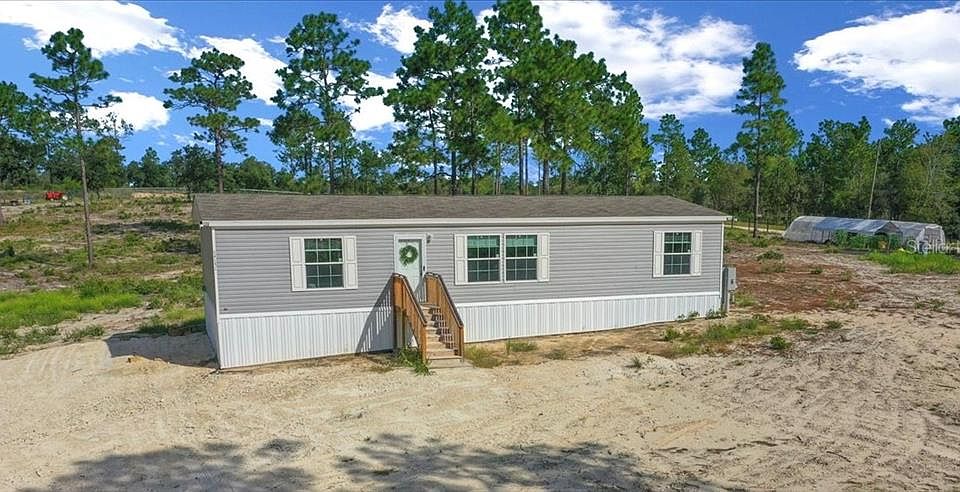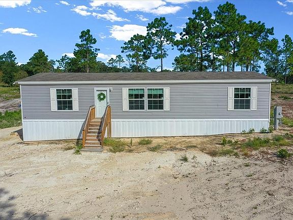 Live the mini-farm life you’ve been dreaming of in this 2024 double-wide manufactured home offering 3 bedrooms, 2 baths and 1,494 sqft of living space, all set on 5 fully fenced acres. Perfectly located for equestrians and outdoor enthusiasts, you’ll be just 22-miles from the World Equestrian Center in Ocala, 4.1-miles from Goethe State Forest with hundreds of miles of riding trails and 17-miles from HITS. The zoning allows for horses, goats, chickens, pigs and more—giving you the freedom to create the farm you’ve always envisioned. Inside the home welcomes you with an open floor plan filled with natural light, highlighted by low-maintenance linoleum flooring throughout. The kitchen boasts ample cabinet & counter space, a center cooking island and room to gather, while the spacious primary suite features a walk-in closet and en suite bathroom with a walk-in shower. A split bedroom plan ensures privacy with two additional generously sized bedrooms—each with its own walk-in closet—conveniently located near the guest bath. The property itself is a blank slate ready for your vision—whether that’s adding a barn, pastures or starting a garden the possibilities are endless Already in place are a variety of established plantings including fig, avocado, yuca, corn, lemongrass and banana trees. With plenty of room for animals, equipment and outdoor living, this property provides endless possibilities. Enjoy the peaceful lifestyle of country living while still being close to world-class equestrian facilities, endless trails and modern conveniences. Schedule your Private showing today!