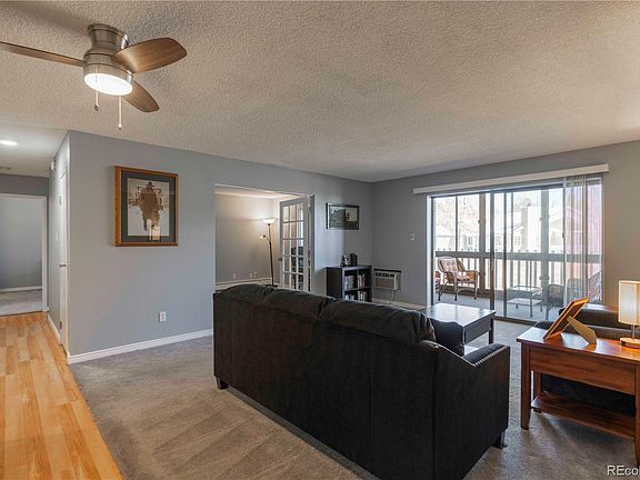 This spacious ground-level unit offers 2 bedrooms, 2 bathrooms, and 1,200 sq. ft. of living space, complete with a private, covered lanai. The home provides plenty of storage, including two large coat closets/pantries, an oversized walk-in closet, an additional storage room, and extra storage in the parking structure. The open-concept floor plan features a dining/kitchen area, a kitchen with a pantry. The living room and primary bedroom are both equipped with air conditioning and ceiling fans to ensure comfort during warm summer months. The covered lanai extends the living space, offering an ideal spot to enjoy your morning coffee. The primary bedroom includes a spacious walk-in closet and an en-suite 3/4 bathroom. The second bedroom provides versatile options as a guest room, home office, or an extension of the living space. The unit also comes with secure building entry and a 1-car covered parking space with additional storage just steps away. Enjoy exclusive community amenities such as a restaurant, indoor and outdoor heated pools, a jacuzzi, sauna, and a fitness center. The expansive 27,000 sq. ft. clubhouse includes arts and crafts rooms and billiard tables. Conveniently located near grocery stores, restaurants, retail shopping, and offering easy access to DIA, Light Rail, I-225, and Cherry Creek State Park, this vibrant community presents a fantastic opportunity to make it your new home!