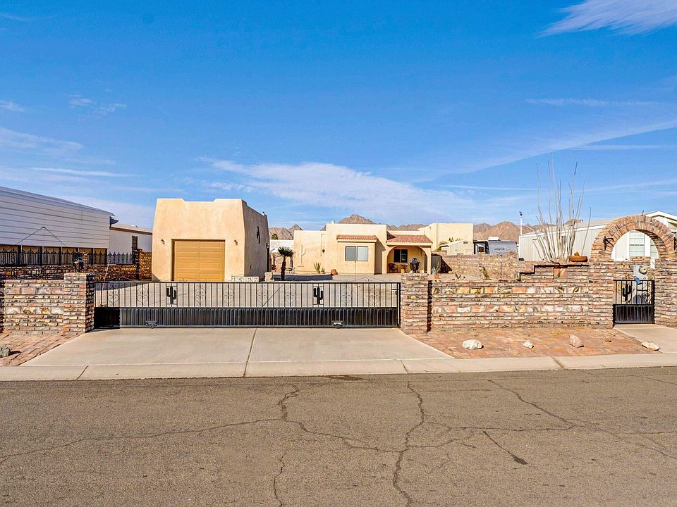 One bedroom casita on huge lot in foothills. Detached garage has 3/4 bathroom and rooftop deck access to enjoy great views of the mountains and sunsets. Mini split cooling/heating systems in living room and bedroom. Tons of storage in bedroom, fireplace in living room with built in window seating. Lots of room for RVs-hookups, entertaining, and enjoying the Yuma weather. Take a look at this great property before it's gone!