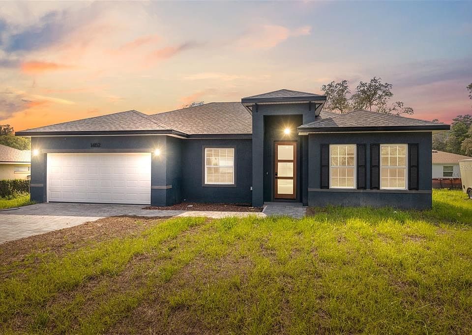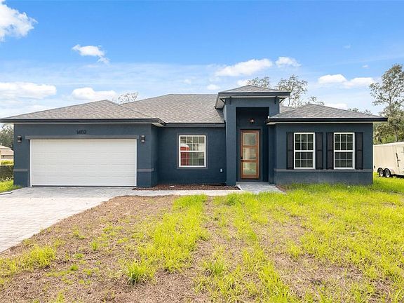 Don't miss out on this charming ranch-style home, located in one of Ocala's fastest-growing neighborhoods. With a thoughtful design, the property offers four spacious bedrooms, all with generous closets, providing practicality and comfort for the entire family. The two bathrooms were also carefully designed and feature walk-in closets, making it easy to organize your daily routine. Upon entering, you'll find an open-plan living room, dining room, and kitchen, creating a welcoming and functional space. The kitchen boasts quartz countertops, a central island, a pantry, modern cabinetry, and included appliances—ideal for those who enjoy cooking with convenience and style. The home also boasts a charming front porch, perfect for relaxing or dining al fresco. Sliding doors provide natural light and easy access to the backyard. There's also a laundry room with a dedicated storage area and a spacious two-car garage equipped with an automatic gate and remote control. With durable, easy-to-maintain vinyl flooring and a one-year home warranty, this home was designed for comfort and tranquility. Live in the heart of Ocala with quality of life, in a home that combines practicality, elegance, and a strategic location. Schedule your visit and come see your new home!