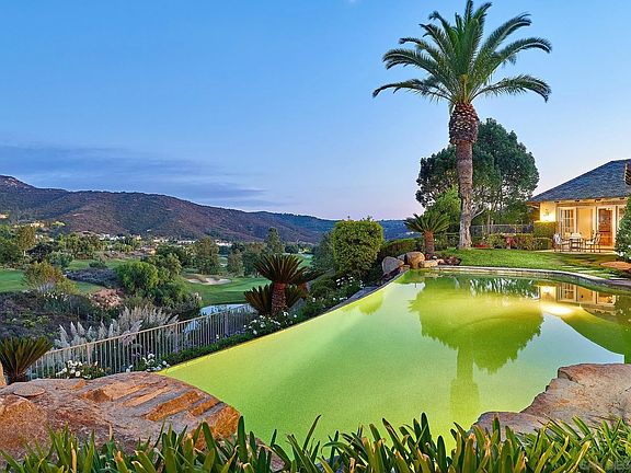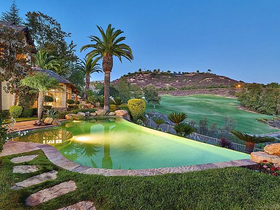 An Iconic French Country Estate in The Heritage Set within the gate-guarded, exclusive community of The Heritage, this Greg Agee French Country masterpiece claims a premier position on over an acre along the second hole of the world-class Maderas Golf Club. Spanning more than 7,800 square feet, this estate blends timeless architectural integrity with resort-inspired living, all framed by immersive panoramic views. A dramatic entry crowned with a dazzling chandelier welcomes you into interiors of refined sophistication—soaring ceilings, freshly refinished hardwood floors, custom millwork, and wainscoting throughout. The great room commands attention with its grand masonry fireplace, vaulted wood-beamed ceilings, and seamless flow into the heart of the home. The gourmet kitchen is a chef’s statement, boasting dual Sub-Zeros, a Viking 6-burner range with flat grill, dual Bosch dishwashers, custom alder cabinetry, and a sunlit dining area with golf course views. Formal and casual spaces—from the elegant dining room to the inviting bar—set the stage for effortless entertaining. Designed to live primarily as a single level, the residence offers a serene ground-floor primary suite with dual walk-in closets, dual water closets, and spa-inspired vanities. A handsome office, an additional ensuite bedroom on the main level, with three upper ensuite retreats ensure comfort for all. A detached one-bedroom casita adds privacy and resort style living for extended guests. Outdoors, the home transforms into a private resort: a vanishing-edge pool spilling toward the fairways. Set on a highly desirable street within the Heritage. Outdoors, the home transforms into a private resort: a vanishing-edge pool spilling toward the fairways, a dramatic waterfall spa, and a fully equipped outdoor kitchen and dining pavilion—all capturing the breathtaking backdrop of Maderas’ rolling fairways. A detailed authentic custom slate roof, motor court with 4 car garage. This estate is more than a residence; it is a legacy of artistry, elegance, and exclusivity—standing proudly among the most distinguished properties within The Heritage.