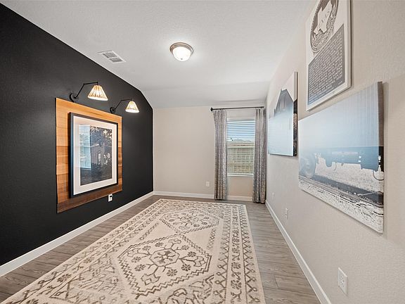Welcome home to this stunning MODEL home. Loaded with upgrades, this home shows beautifully. Upgrades include designer accent walls, formal drapes throughout, epoxy garage flooring and uniques light fixtures. The fully fenced generous size back yard with covered back patio just off the dining/kitchen area would be a wonderful place to entertain. Island kitchen opens to the family room gives makes it bright it bright and airy. Do not miss this gorgeous home. Schedule your showing today.