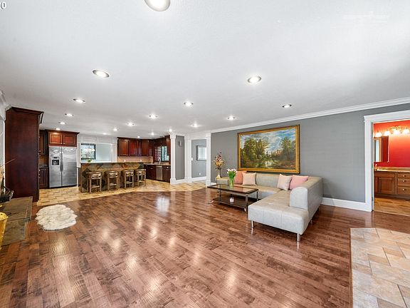 Open, light-filled, tons of storage. Updated wainscoting, trim, recently stained deck all ready for summer. Use your imagination in the 8 car garage that covers the entire basement of the home with full 220 electric. Wide open spaces for studio, car collections, wood shop. Tap into endless potential! Enjoy the huge backyard with creek view, entertainers deck, chicken coop and fruit trees. Easy drive to all the amazing shops and restaurants downtown Oregon City has to offer.