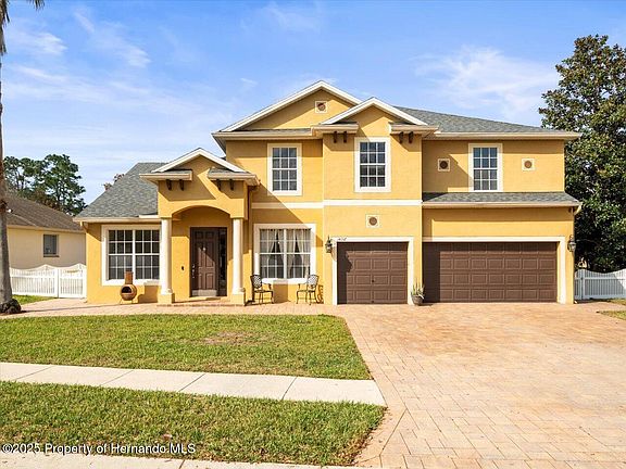 Gorgeous 4 bedroom plus den, 4 bathroom home with a private back yard and. This spacious floor plan features a den, formal living room, formal dining room and an eat-in gourmet kitchen that has all the amenities including stainless steel appliances, double oven, cook top, 42'' raised panel cabinets, closet pantry and island overlooking the large family room. The office on the first floor could also be used as a 5th bedroom. The entire first floor is tile. Upstairs has a loft and 4 bedrooms including a master suite with walk-in closet, dual vanities and separate garden tub & shower. The 4th bedroom has it's on ensuite. Enjoy the Florida lifestyle with a fully fenced back yard, extended cover lanai, pavers and pool with no rear neighbors. 2,959 Living sqft 4,151 Total sqft. NEW ROOF 2024 In addition to the stunning home and yard, enjoy all the benefits of living in a premier gated community that offers: two swimming pools, splash pad, two playgrounds, volleyball, fitness center, dog park, basketball and tennis.