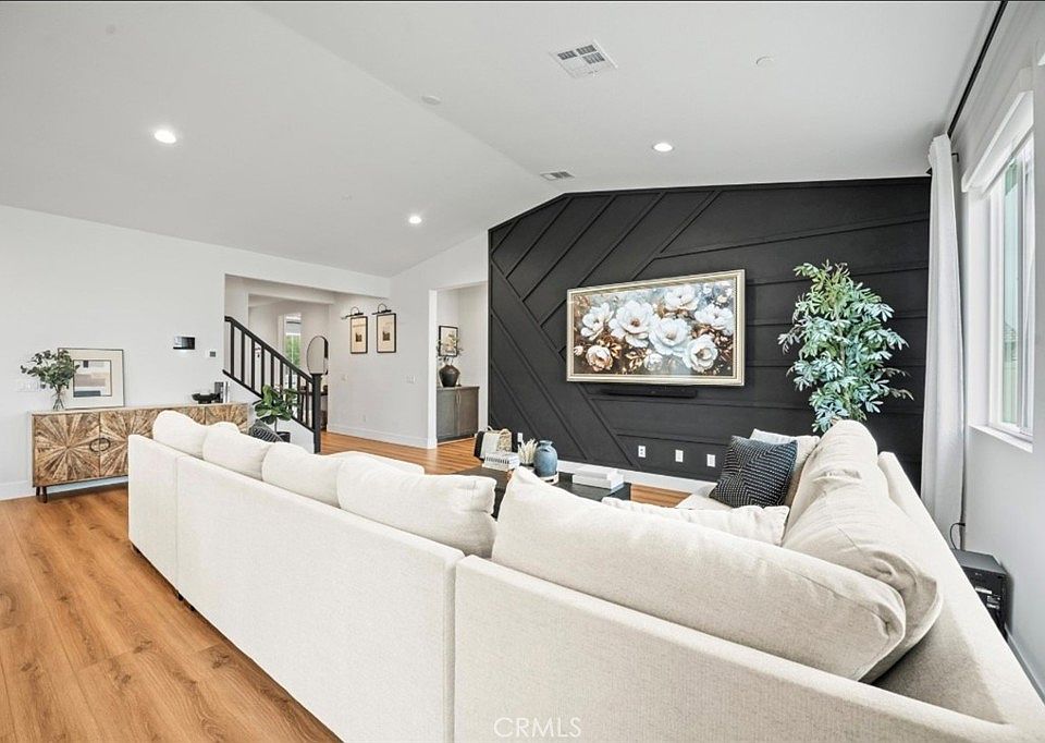 Welcome to this extraordinary home situated in Rancho Belago. Upon entry, you are greeted with a formal entrance that leads you to the formal living room. This home offers quartz countertops, a large island, an open concept, plenty of cabinet space, stainless steel appliances, solar panels, water proof laminate flooring, recessed lighting throughout the home, a water softener system, tankless water heater, light fixtures, custom made roller blinds, high ceilings, a spacious backyard, and a full security system. The generous master bedroom is located on the main floor and it will swoon you with space to comfortably enjoy and relax after a long day. It has a walk in closet, double sink vanity, a large shower/tub, and big mirrors. The family room has an open concept and vaulted ceilings, perfect to spend time with family and friends. The expansive backyard has a lot of space for anything you want to do with it. The main floor has another bedroom and full bathroom located by the main entrance. The upstairs offers three bedrooms, a full bathroom, and a loft with lots of lighting and a nice view to the mountains. The garage has two car spaces with a side door that leads you to the side of the backyard. Look no further and make it yours!