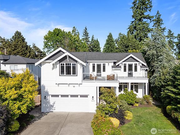 This timeless East of Market home offers 4 bedrooms, 4 baths, and blends refined design with thoughtful updates. The open floor plan features a remodeled kitchen with quartz and porcelain surfaces, high-end appliances, and classic finishes. Expansive windows and updated lighting create a bright, elegant feel. All bedrooms are located upstairs, including a private ensuite. The lower level includes a spacious bonus room—ideal for a media room, gym, and a potential 5th bedroom. Set on a quiet street with a beautifully landscaped private backyard and an upper deck showcasing lake, city, and mountain views. Includes an EV charger and attached garage. Just minutes to Google, Peter Kirk Elementary, Marina Park, and downtown Kirkland.