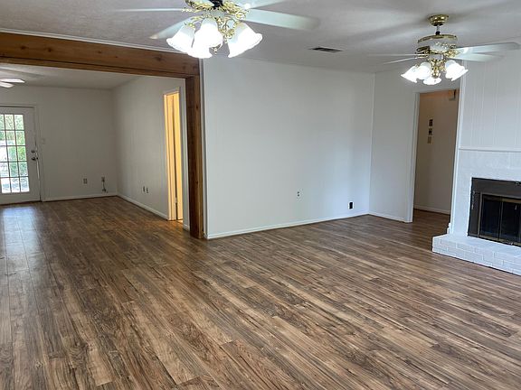 1 mile from campus. Freshly painted interior, new tile in both bathrooms, ceiling fans in all rooms. Huge open living/dining and kitchen area on cul-de-sac street. Fenced yard. 1 mile to campus.