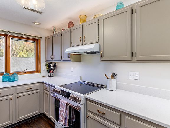 This beautifully updated 2-bedroom, 2-bath condo offers one-level living in a prime Ames location near Iowa State University, Reiman Gardens, Jack Trice Stadium, and Hwy 30. Nearly every surface has been refreshed—new paint throughout, new luxury vinyl plank flooring and carpet, updated kitchen and bathrooms, quartz countertops, a gorgeous stone fireplace feature with an electric insert, and an upgraded designer-style white refrigerator and range with convection and Air/Fry feature. A new washer and dryer add convenience and value. The vaulted living room feels bright and spacious, and the quaint balcony is perfect for enjoying morning coffee or evening sunsets. Every detail has been thoughtfully chosen to create a cohesive and inviting look that feels fresh, modern, and move-in ready. A single car garage completes the package.