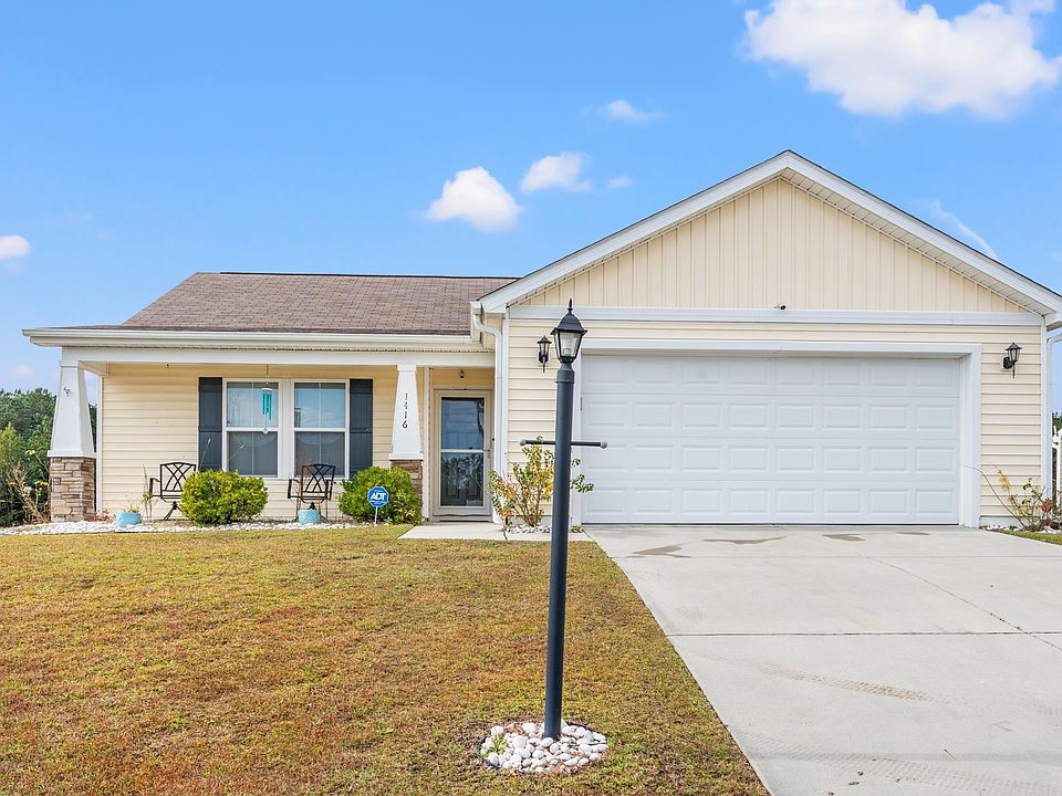 Welcome to the perfect blend of comfort, space, and scenic beauty. This home offers a serene water view and inviting curb appeal, with a spacious interior designed for relaxed living. The vaulted ceiling in the living room adds an open, airy feel, while the large 15' x 14' sunroom provides the perfect spot to enjoy the view year-round. The kitchen flows effortlessly into the main living areas, making entertaining a breeze. The primary bathroom features a luxurious tiled shower and jacuzzi tub, creating a true spa-like retreat. A large two-car garage offers ample storage and convenience. Just a short distance to the nearby Conway Riverwalk, where you’ll find charming shops, local restaurants, and the best of small-town Southern living. This is your chance to own a well-appointed home in a picturesque setting—don't miss it! Home has new HVAC installed in March 2025, new hot water heater installed in April 2025, and new garbage disposal installed November 2025.
