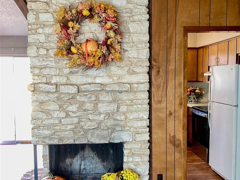 Massive stone fireplaceVintage charmNewly fenced-in yardPrivate side drivewayNicely sized bedroomsElectric garage door opener