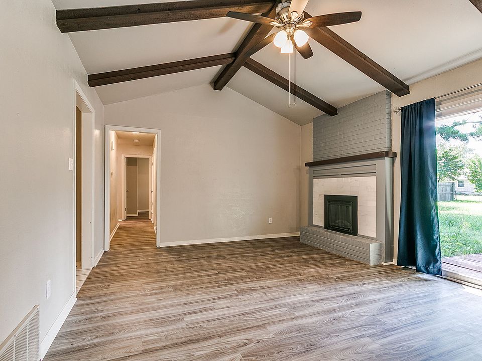 This home features beautiful updates, highlighted in the kitchen and bathrooms. This 3-bedroom 2-bathroom also features a two-car garage and a large backyard with a paved porch. The living room has dark wooden beams on the ceiling and a painted brick fireplace. The kitchen has white cabinets and granite countertops. One of the bathrooms has double sinks. The bedrooms have nice-sized closets. This is a no-pets and non-smoking unit. The security deposit is $1,400. The new lease will go through May 31, 2026.