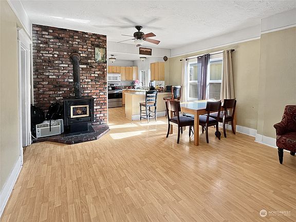 Cozy home with a contemporary layout with plenty of natural light and a wood stove to keep you warm in the winter. Kitchen has plenty of counter space, updated kitchen cabinets, and a breakfast bar. Home is nicely laid out and has 2 bedrooms, 1 bathroom, updated electrical panel, and a utility room. Plenty of space outside with a fenced backyard, alley access, and a small storage shed.