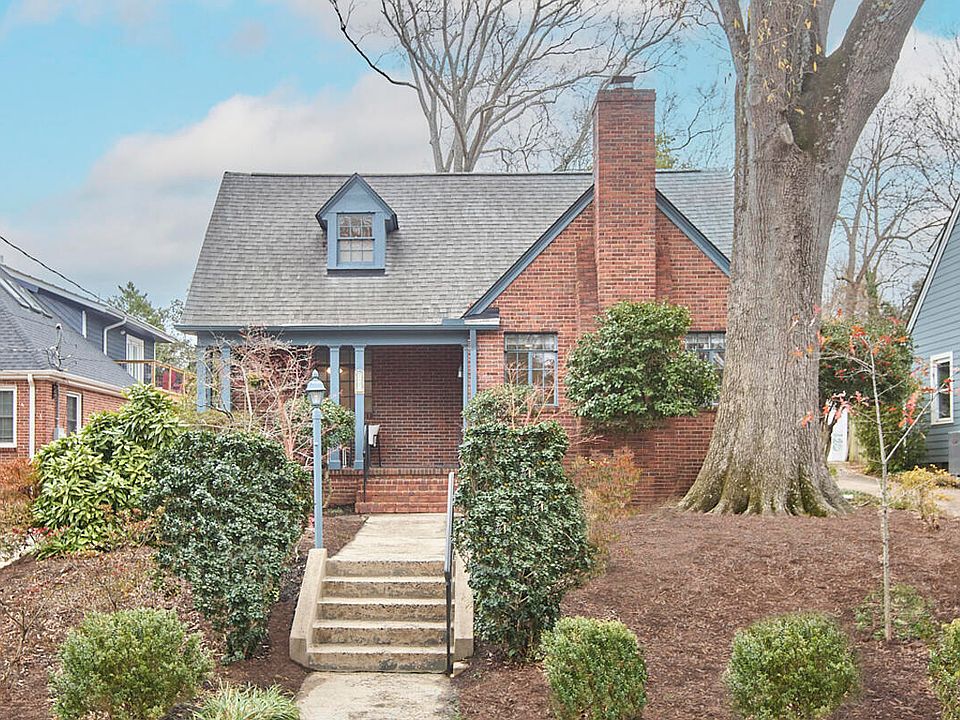 Living like almost 2,100 sqft, this Tudor cottage offers a finished upstairs retreat that's fully integrated into the house, though only part qualifies as official living area per NC appraisal measurement guidelines. Fresh paint, new lighting, hardwood floors, built-ins, arched openings, and a fireplace ready for stockings. Bedrooms on the main and a private suite with bonus space upstairs. Front porch, fenced backyard with deck and pergola, wired detached garage, and basement workshop. A settled, welcoming home for the holidays.