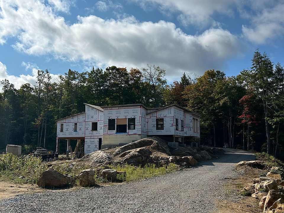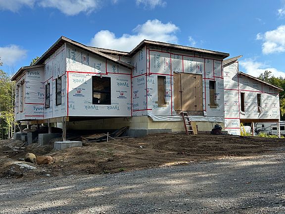 New, under construction spacious 3,150 SF custom bungalow with 4 bedrooms, 3.5 bathrooms, on 10.34 acres. This home is built on solid bedrock & powered by wind and solar. Kitchen and bathroom walls & floors are Italian porcelain slabs. Large kitchen has Italian cabinets, Miele appliances, Italian designer fixtures with walkout to a deck on one side and a 480 SF courtyard on the other. Quality Italian engineered white oak flooring with inlays, high sloped ceilings, large windows & doors, 3-way fireplace with gold leaf imprinted porcelain, wrap around deck, media room, indoor lap pool, and Douglas fir ceilings offer you luxurious surroundings. Radian heating with HRV system, pellet stove with silver leaf imprinted porcelain, split air conditioning, and polyurethane closed cell spray foam insulation to keep you warm or cool. Bedroom 1 & 2 have 8 FT closets. Bedroom 3 has 12 FT closet, 4 pc bathroom. Primary bedroom with a large ensuite w/ steam shower, 6 ft deep bathtub, his and hers vanities and wash basin. Primary 8' x 12' bath offers and oversized tub, 4' x 4' shower, 8' vanity with double sinks. Long winding treed drive and pond. Standing seam metal roof with cedar soffit & facia. Well is 157' deep well supplying 30 gal / minute. This is a must see great new home with privacy.
