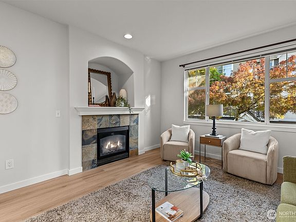 Perfectly situated in the heart of Issaquah Highlands, this light-filled and desirable end-unit townhome offers a rare blend of style, convenience, and comfort. Step inside to find new flooring and paint throughout, with open-concept design featuring a beautifully updated kitchen with SS appliances and quartz counters. The spacious living and dining areas are enhanced by oversized windows and a cozy gas fireplace, with a private balcony. Retreat to the well-appointed primary suite with vaulted ceilings, dual closets, and a luxurious 5-piece bath. Oversized garage w/ ample storage. Enjoy the unmatched amenities of the Highlands, steps to dining, shops, entertainment, trails, and parks, with quick freeway access and coveted Issaquah SD!