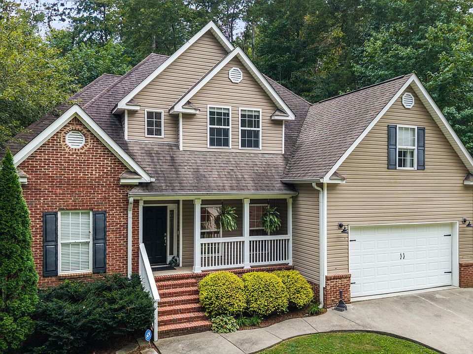 Welcome Home to This 3-Bed, 2.5-Bath, 2,351 Sq Ft Beauty in Soddy Daisy, TN. Step through the front door and into a bright, inviting living room where high vaulted ceilings, gleaming hardwood floors, and a gas fireplace framed by custom built-in shelving create a warm focal point. To the right, the formal dining room showcases elegant wainscoting, while just steps away, the kitchen offers expansive marble countertops with bar seating, stainless steel appliances, and a large pantry with a stylish sliding barn door. Conveniently adjacent, the laundry room includes the washer and dryer, making daily chores a breeze. Tucked privately on the main level, the master suite is a true retreat. The spacious bedroom leads into a luxurious bath featuring double marble vanities, a walk-in shower with glass door, a jetted soaking tub, and a very large walk-in closet. Upstairs, you'll find two additional bedrooms, a full bath with double vanities, and a generous finished bonus room with closet, perfect for a playroom, home office, or guest suite. Outside, enjoy a covered front porch for quiet mornings, a secluded back patio with firepit for evening gatherings, and even a charming treehouse for the kids. All of this is set in a convenient Soddy Daisy location—close to restaurants, shopping, and Chickamauga Lake—making this home the perfect blend of comfort, style, and lifestyle.