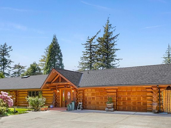 Mini farm + true log home on shy 5 acres! Nestled at the end of a paved drive in a park-like setting with 40+ fruit trees, raised garden beds, greenhouse, large fenced area & a bounty of hardwood maple trees = syrup & firewood! New 50 year roof, expansive trex deck for entertaining, trails, & privacy! This 3,200 sqft masterpiece boasts gorgeous archways, spiral stairs, tile, & hand-collected Skagit River rock showcased on the fireplace, kitchen island, outside along garden walls, stairs to backyard & columns supporting deck. Main level offers 3 beds/2.75 baths, daylight basement, woodstove, oversized 2-car garage with built-ins, workshop, radiant heated floors, carport & space for a future shop—your retreat awaits!