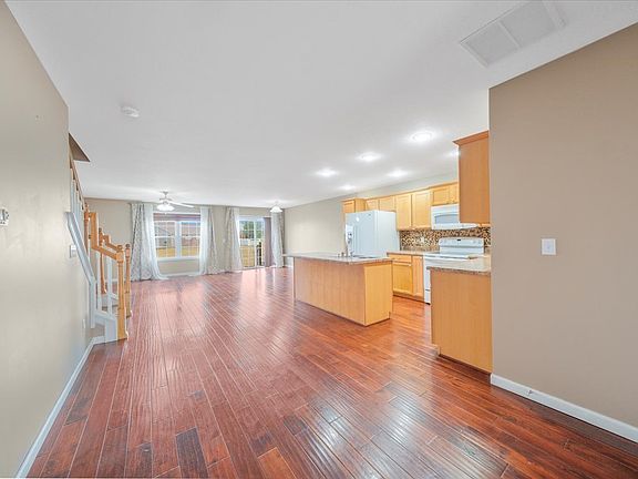 Gorgeous modern updated zerolot townhouse in Boulder Ridge with open layout and abundant space. Main level features newer hardwood floors, spacious living and dining areas, kitchen with island and breakfast bar, and convenient half bath. Backyard opens to a large green space with peaceful lake views. Upstairs offers 3 bedrooms, a loft-style family room, and 2nd-floor laundry. Primary suite includes a walk-in closet and private bath; two additional bedrooms share a full bath. Enjoy nearby Sunset Ridge Park, walking trails, tennis/pickleball and basketball courts, and open recreation areas. Don't miss this opportunity to make it yours!