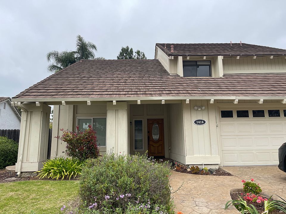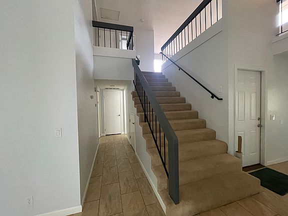 Single-family home with Central Air .Living room/Dinning Room area with vaulted ceilings and fireplace, an eat-in kitchen, and first floor master suite with double sinks and large closets. The second floor includes three bedrooms, a full bath, and a family room. The extra wide staircase facilitates moving items upstairs. Home has two car garage with laundry hookups and extra storage space. The backyard has a covered patio and lawn area with established decorative flowering plants and bushes. Renter is responsible for all utilities No smoking on property Washer and Dryer hook-ups in the garage
