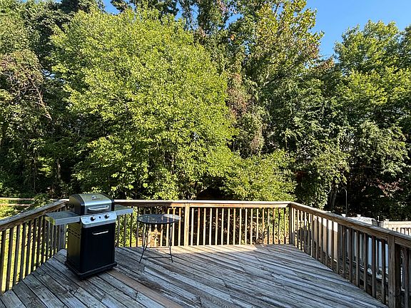 Finished walkout basementBackyard with mature treesBrick townhomeLarge deckJacuzzi tub