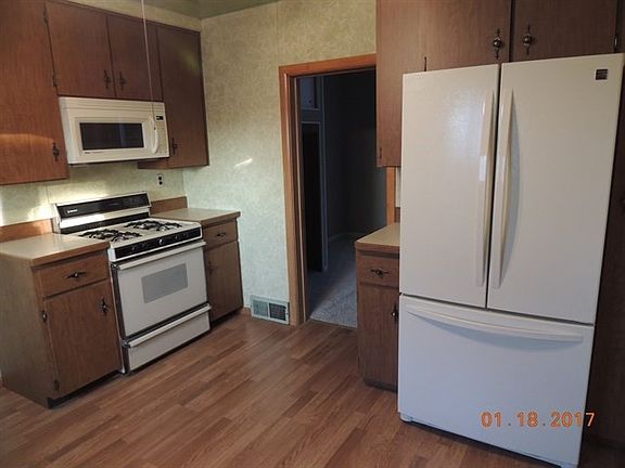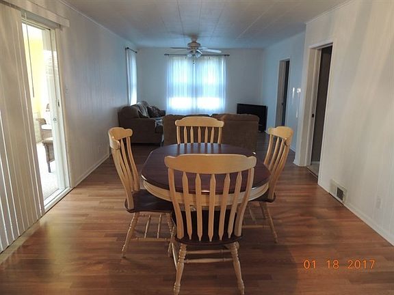 Move right in to 3 bedroom 1 story home. Eat in kitchen with stove, refrigerator, and dishwasher . Living - dining room combination has view of the sunny enclosed porch. Full floored attic for possible expansion. Bathroom has new window and has Jacuzzi tub. Water heater 2 years old. New siding on house and garage. New roof on house and garage. Enclosed porch off kitchen could be used for washer dryer area. Additional shower and stool in the basement. Move in condition.