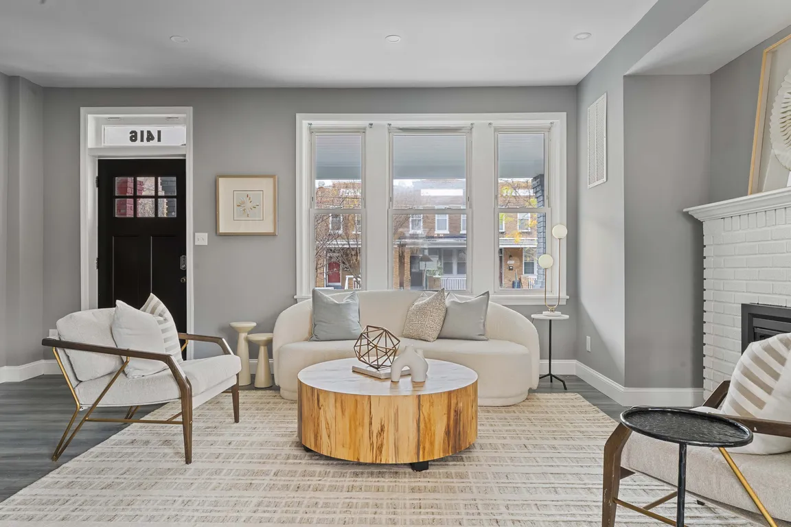 Welcome to 1416 S Street SE, a beautifully refreshed, light-filled row-home that blends modern style with classic DC charm. Step inside and you’re greeted by an airy, open main level wrapped in windows, every space drenched in natural light. The living room features a crisp white brick fireplace and soft, ...