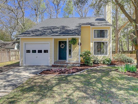 Absolutely adorable & situated on a cul de sac with morning sun in the back & afternoon sun in the front! So close to beaches & downtown, you can't go wrong with this location! The 2 story vaulted ceiling on the main level allows this home to live large. Beautiful new ('18) faux wood flooring throughout, new roof ('18) fresh paint, new kitchen counters ('19) & updated lighting. Spacious eat in kitchen has room for an island & all appliances convey, even washer and dryer! Master on the main level has a walk in closet & ceiling fan + 2 large bedrooms upstairs & a 2nd full bath. Huge screened porch with a ceiling fan allows for more living space & there's even a small patio for grilling. Fenced yard for privacy & nothing is behind this house but neighborhood green space/trees! Parking pad was just added for more flexibility in driveway parking. ** Wood look flooring is a LVP (Luxury Vinyl Product) product which is new and a tad more expensive. It is good for kids/pets/spills/dirt, everything. The neighborhood has a pool, tennis courts, a basketball court, clubhouse, picnic area & children's play park. Minutes from 526, Sullivan's Island and IOP!