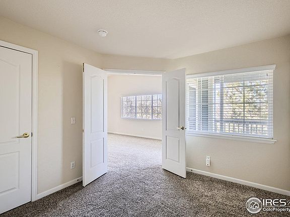 End unit in desirable Golden Bear neighborhood with main floor living offering nice privacy and views to Ute Creek Golf Course. This open-concept layout is flooded with natural light, creating an inviting atmosphere. Enjoy the new carpet throughout and updated flooring in entry and primary bath. Open kitchen with ample counter space, pantry and overlooks the dining and living areas. The primary bedroom offers an en-suite bathroom complete with dual sinks, a deep soaking tub, separate shower and walk-in closet. The 2nd bedroom offers flexibility for guests and family. A 2nd full bathroom ensures convenience and privacy for all residents and visitors. Well lit office off the living room is perfect for remote workers or 3rd bedroom. Wonderful covered deck for extra entertaining space. Heated 2 car tandem garage is ideal for extra storage or can be converted to a home gym or workshop. This corner unit condo is conveniently located just minutes away from the heart of Longmont with easy access to I-25, Highway 66 and 287. HOA includes an outdoor pool, exterior maintenance, snow removal and lawn care.