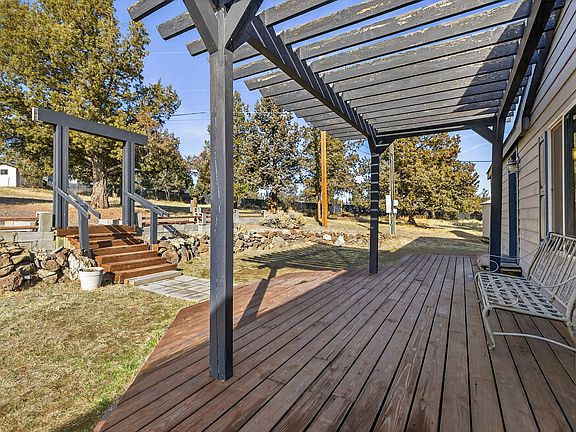 Spacious, updated home in a great Crooked River Ranch location! Close to the canyon and at the end of a culdesac, you'll love this rural property with the serene setting and plenty of outbuilding storage and hobby space. The house offers bright common spaces and four sizable bedrooms, all with large closets, and the floor plan allows for primary suite privacy distanced from the guest rooms. Newer flooring, many updated appliances, and a new heat pump! Desirable front and back deck porch spaces for outdoor relaxation, and the house is complete with an enclosed sun porch to stay cozy in cooler seasons. With over an acre to spread out, this move-in ready home and incredible outdoor space won't last long.