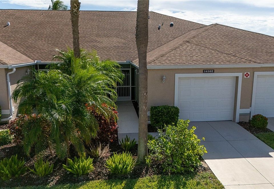 Do not miss this best priced Villa in the South Fort Myers area. Heritage Cove is a 55+ gated community with a massive clubhouse, sparkling pool, tennis courts, and more located close to both beaches and shopping. This fully furnished/turkey home features a flexible floor plan with a room that can be a formal dining room or den. Tropical foliage greets you as you make your way to the screened front entry with electric hurricane screen & impact slider to breakfast nook. Step into the foyer and to the left you will find the breakfast nook, pantry, and granite kitchen with new appliances still under warranty. To the right is the generously sized guest bedroom, bath with grab bars & granite, & interior laundry. Just beyond the laundry hall is the flexible den/dining room. Straight through is the sunny open living area featuring a granite bar and opening to the Florida room enclosed with impact sliders, which is accessible via the living room or primary bedroom. Beyond the Florida room is an open patio ready for you to soak up that Florida sunshine. The ensuite primary with sunny bay windows looks out over the lovely pond and offers a large WIC and shelved closet, as well as linen closet in the bath that boasts a tile shower and granite vanity. The oversized single car garage has a wall of built-in cabinets and lots of shelving to keep everything tidy. All of the infrastructure has been updated, hot water heater, HVAC & ductwork, kitchen appliances, and impact windows & doors are all recent updates. Information is believed to be accurate but always perform your own due diligence.