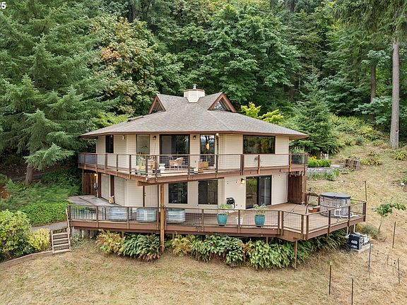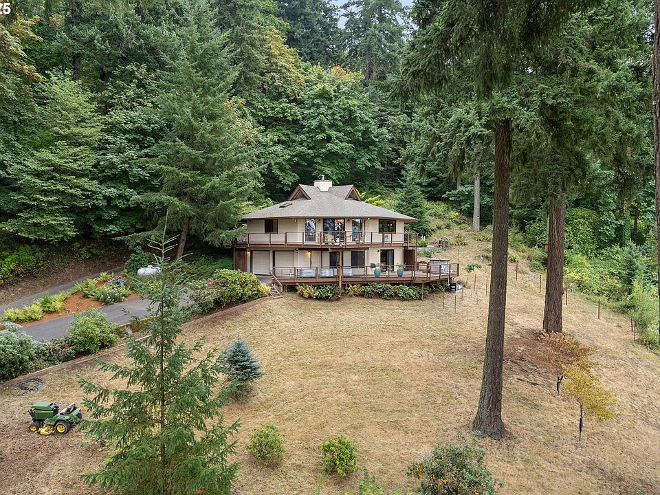 Serene Nature Escape with Sweeping West ViewsSituated on 1.5 acres on the west side of Powell Butte Park, this architecturally distinctive octagon home has 200 feet of fenced land adjacent to the park. Explore miles of trails, wildlife and old growth trees all which extends the feeling of privacy and peace you find inside and outside this truly one of a kind home.Relax in one of the many spaces with sweeping sunset views with ample sun exposure for extensive garden enthusiasts. No detail was spared in the kitchen and bath renovation. A fabulous chef’s kitchen features quartz countertops, a Wolf 5-burner range, double ovens, high-end stainless steel appliances, custom cabinetry, and a pantry. Entertain the masses or keep this gem to yourself with a large great room, wet bar and sliders to the wrap around deck. Windows in every direction ensure you don’t miss the incredible view. You can ditch that club membership because the primary bathroom delivers a spa-like experience with soaking tub, cedar-lined sauna, two-person shower, and natural river stone flooring. The lower level can function as a fully self-contained apartment with a private entrance but is connected inside the home for integrated living if you choose. Complete with a full kitchen, engineered stone countertops, stainless appliances, washer/dryer, smart thermostat, and a beautifully finished bath, it is ideal for guests, multi-generational living, or rental income. The current tenant pays $2100 and will be vacating by the closing date. Enhanced soundproofing, a private deck with cedar hot tub, and a large storage room provide additional comfort and utility.A 36’x36’ heated outbuilding with three insulated roll-up doors, a heated office, and ample storage is perfect for hobbies, creative projects, or potential income opportunities. Previously rented for $2000 per month.