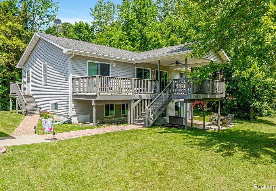 Merry Lake WATERFRONT!!! Experience the best Michigan lake living with this exceptional waterfront home, featuring 310 feet of frontage with direct access to private, 200-acre all-sports Merry Lake in Camden. Whether looking for a serene weekend getaway or a comfortable year-round residence, this property offers the perfect combination of natural beauty, functionality, and lifestyle amenities. Enjoy breathtaking sunset views from several main living areas, where large windows and open spaces blend indoor comfort with the outdoors. This well-appointed home features 4 bedrooms and 3 full bathrooms, including two separate living areas, ideal for hosting guests or accommodating multigenerational needs. The open-concept layout is filled with natural light. It includes a spacious kitchen with stainless steel appliances, ample counter space, and a direct connection to the main living room—perfect for entertaining or everyday living. Outdoor features include a sprawling deck, a private balcony off the primary suite, a covered porch, and a walkout lower-level patio just steps from the water. A large, 40x24 pole barn adds incredible value, offering room for boat storage, water toys, vehicles, or use as a workshop, making it the ultimate companion to lakeside living.