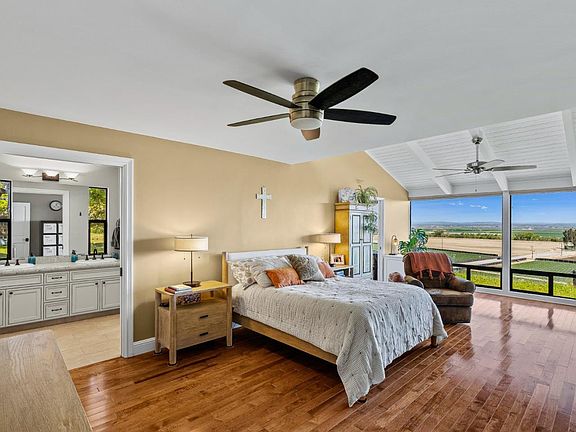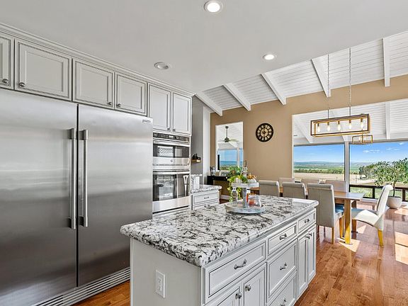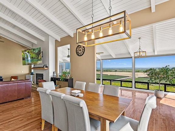 This sprawling home boasts of 180 degree views of the valley. Natural light flows throughout and reflects off the beautiful polished wood floors. The Chef's kitchen is an entertainers dream. Kitchen offers an open concept, high end appliances and plentiful space. Start your day in the primary bedroom suite with vaulted ceilings, views of the valley and a walk-in closet. House has been updated with air-conditioning, a new deck, water softener, reverse osmosis, a generator, fresh paint, etc. Let your day melt away as your sit on your deck and take in the views.