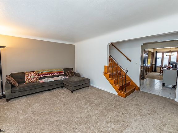 Welcome Home to this charming Bungalow with a welcoming curb appeal that can be found on this quiet street in Maple Heights! This great home features 3 bedrooms, a covered front porch, a full basement & nice sized yard with a detached 3 car garage. The entryway opens to the neutral living room with tinted windows, fresh paint and newer carpet throughout. The kitchen supplies ample cabinetry, prep space, & included appliances. A spacious 30x15 family room with a dining area, laundry, storage and a sink and cabinets. 2 comfortable bedrooms with hardwoods & an updated full bathroom complete the main level. Upstairs you will find the private master bedroom with built in storage and a walk in closet. More living space is found in the finished lower level with a full bath, crawl space and glass block windows. The partially fenced in backyard provides plenty of room for friends and family to gather for an outdoor BBQ and activities. Updates: Thermal coupler(2020), New furnace transformer boar