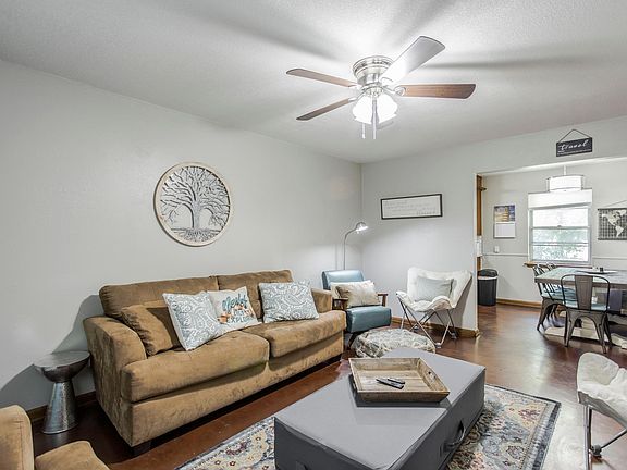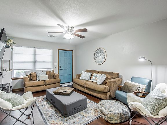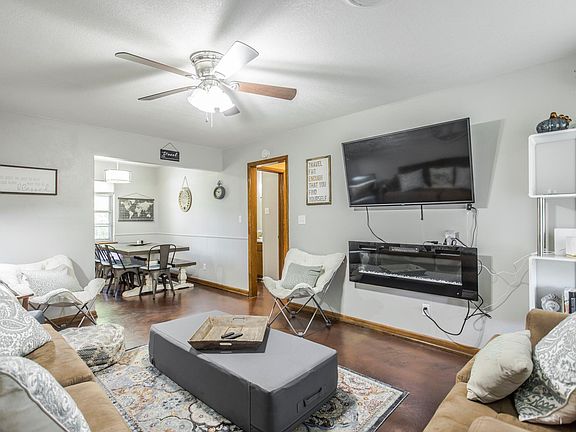 Home featuring gorgeous stained concrete floors throughout! 3 bed 1.5 bath 1 car garage with large patio & gorgeous yard with Pecan tree, Furnished patio with Grill & fire pit. Inside utility room and ready for move in. All utilities including internet and yard maintenance are included with this furnished home, including internet and lawn maintenance.