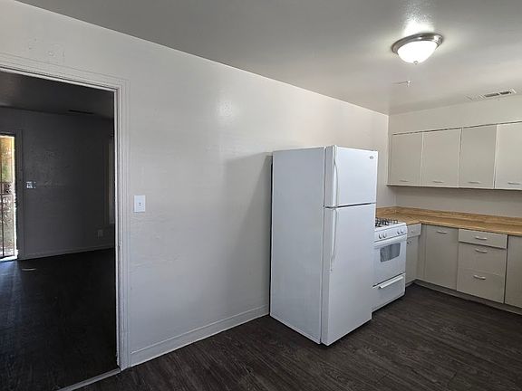 Available two-bedroom, one-bathroom apartment. It includes a gas stove, refrigerator, swamp cooler, and wall heater.