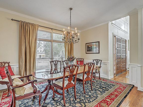 This stately brick home--originally built for Eagle Landing's developer--offers timeless elegance and modern comfort. High, smooth ceilings and rich details enhance every room. The formal living area boasts graceful columns and a marble-surround fireplace, while the formal dining room impresses with an elegant brass chandelier. To the left, a stunning mahogany-paneled library features French doors, soaring ceilings, and a refined atmosphere perfect for work or relaxation. A grand two-story foyer with a free-floating staircase opens to formal living and dining areas. The main-level primary bedroom suite features a fireplace, Jacuzzi tub, shower, with oversized walk-in closet and a walk-out screened porch. The great room includes a fireplace, wet bar, and flows into the spacious kitchenwith custom cabinetry, granite countertops, butler's pantry, and walk-in pantry. Upstairs, two bedrooms offer private balconies- one overlooking the front grounds and one in the rear and a built-in cabinet. Jack and Jill bathroom, while another main suite bedroom upstairs with a full bathroom. A central vacuum system is in place to ease your cleaning. There is an abundance of storage throughout the home with a multitude of closets, but if you need more, there is a pull down attic space along with several walk in attic areas on this floor. HVAC systems replaced in 2025, 2021. 4,229 SqFt of hardwoods, High-quality carpet and luxury padding in bedrooms provide exceptional comfort underfoot and exquisite finishes throughout. There are screened porches off the main bedroom and the living room. Outdoor living is unparalleled; the property boasts wonderful, mature vegetation, beautiful metal fencing in the rear with an amazing POOL featuring exquisite hand-laid tiles, a special waterfall, resistance jets, and its own heat pump for cooler evenings. Cool pool decking ensures comfort on hot days. No expense was spared in designing and maintaining this one -of-a-kind estate. A rare opportunity to own a piece of Eagle Landing's history, offering unmatched elegance and enduring quality . Great green space behind house and walking trails. Centrally located to Charleston and just 20-30 minutes to most beaches and attractions! Minutes to the mall, amazing cuisine, shopping, and Bettis Boat Landing for the boaters!