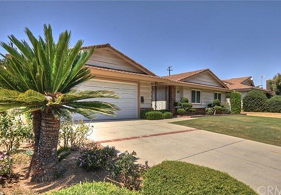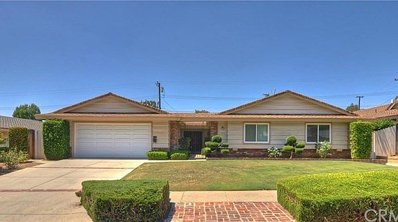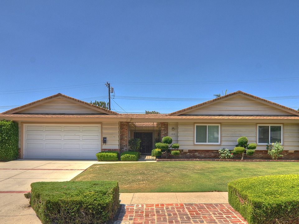 Charming SINGLE-STORY home in Brea with four bedrooms, 2 bathrooms, and approximately 2,300 square feet of living space. With a large grassy front yard, driveway and a 2 car garage, this home is a must-see! Enter the home through double doors, where you will be greeted with a nice foyer. The spacious living room offers a cozy stone fireplace and large windows that let in plenty of natural lighting. The separated dining room has double doors which lead to the expansive backyard. The kitchen features wood cabinetry, lots of counter space, and bar seating for guests. The home features a oversized laundry room, which was a bathroom in the original floor plans and can easily be converted back to a full bathroom. The huge backyard offers a large covered patio, as well as tons of greenery, perfect for a family gathering!