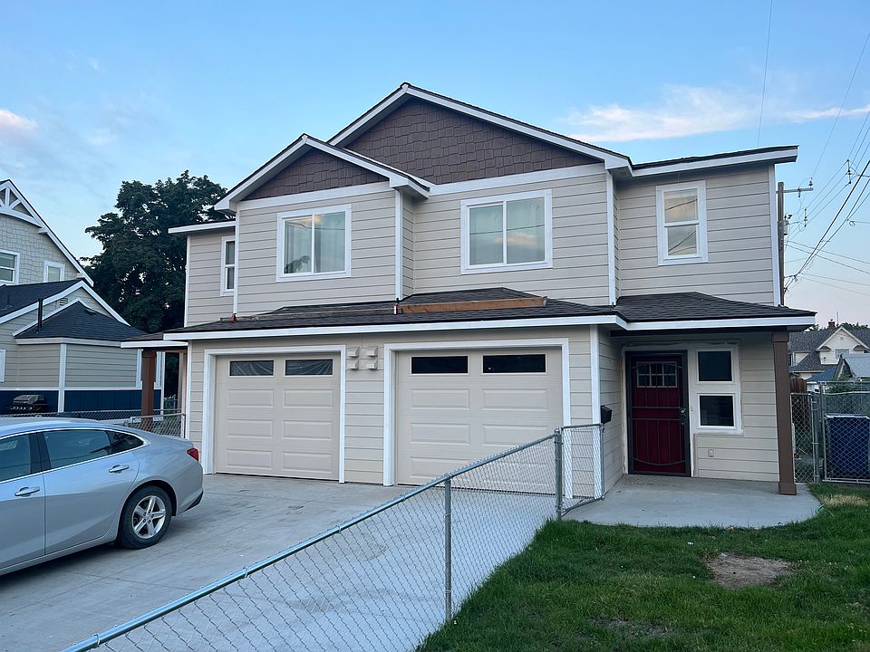 New construction townhouse/duplex. Fenced yard, large front stoop. 1 car garage included and attached (additional 200 sqft~). Beautiful covered patio. All modern conveniences and extremely energy efficient. Upgraded soundproofing between adjacent unit- very quiet. Master bedroom has double vanity, large bathroom and walk in closet. Air conditioning/Heat Pump and modern lighting. Beautiful kitchen with quartz countertop. Kitchen and bathrooms have new fixtures and appliances. New dishwasher, range, refrigerator, water heater. Complete hookups for washer/dryer. Floor plan is well designed and efficient.