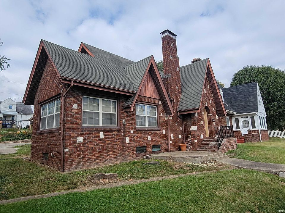 Welcome to your dream home in Southern Indiana, where luxury and character converge! This remarkable Tudor-style abode presents nearly 2500 square feet of exquisite living space, boasting timeless oak wooden floors and trim throughout. Step inside to discover the heart of the home—a spacious living room adorned with a grand fireplace, offering warmth and ambiance on cozy evenings. Elegant archway entrances on the main level add a touch of sophistication and charm, setting the stage for unforgettable gatherings and cherished memories. Indulge your culinary aspirations in not one, but two kitchens, ensuring ample space for culinary creativity and entertaining guests with ease. The ceramic tile kitchen floor adds a touch of modernity to the traditional charm of this residence, while all-new hardwood floors on the main level ensure both durability and style. With four generously sized bedrooms and a full basement, this home provides an abundance of living space to accommodate your lifestyle needs. Plus, with outdoor entrances on two levels, including a separate entrance for potential rental income upstairs, the possibilities are endless. While this home exudes undeniable potential and charm, it awaits the touch of a discerning buyer to unlock its full splendor. With a newly installed heating and cooling unit, the groundwork is laid for comfort and convenience, awaiting your personal touch to transform this residence into your own private sanctuary. Seize this remarkable opportunity to make this house your home and unleash its full potential with a touch of tender loving care. Sold "AS-IS" and "WHERE IS," this property is eligible for special financing, offering a unique chance to turn your homeownership dreams into reality.
