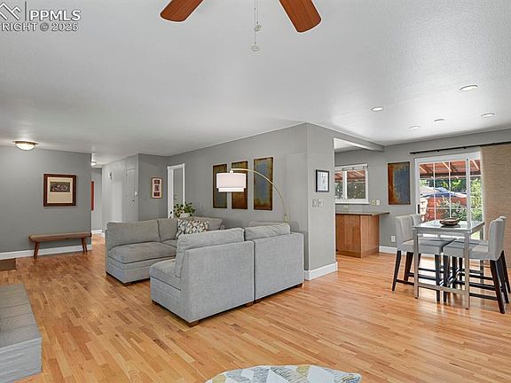 This well maintained brick rancher is located in the desirable Ben-Mor Terrace neighborhood and is close to Palmer Park. Property has four bedrooms, three bathrooms, one car garage, and over 2,500 sq ft. The main level has stunning wood floors throughout and newer windows. The large living room has an abundance of natural light and has a painted brick gas fireplace surround. The dining room adjoins both the kitchen and main level living room with a sliding glass door that leads to the backyard. Beautifully updated kitchen features custom cabinets, modern hardware, gas stainless steel range, granite counter-tops, custom tile backsplash, a built-in pantry, and recessed lighting. The primary bedroom has an adjoining 3/4 bathroom. The additonal main level bedroom is oversized and has room for a sitting area/office-currently being used as a workout room. The lower level has a large family room with room for a pool table or media room, two additional bedrooms, and another 3/4 bathroom. The lower level bathroom has been updated with tile surround, recessed lighting, and a new toilet. The fully fenced in backyard has a covered patio and alley access. Newer interior paint throughout home. Close to downtown, Patty Jewett Golf Course, parks, schools, hosptials, Olympic Training Center, restaurants, shopping, local coffee shops, and hiking/biking trails.